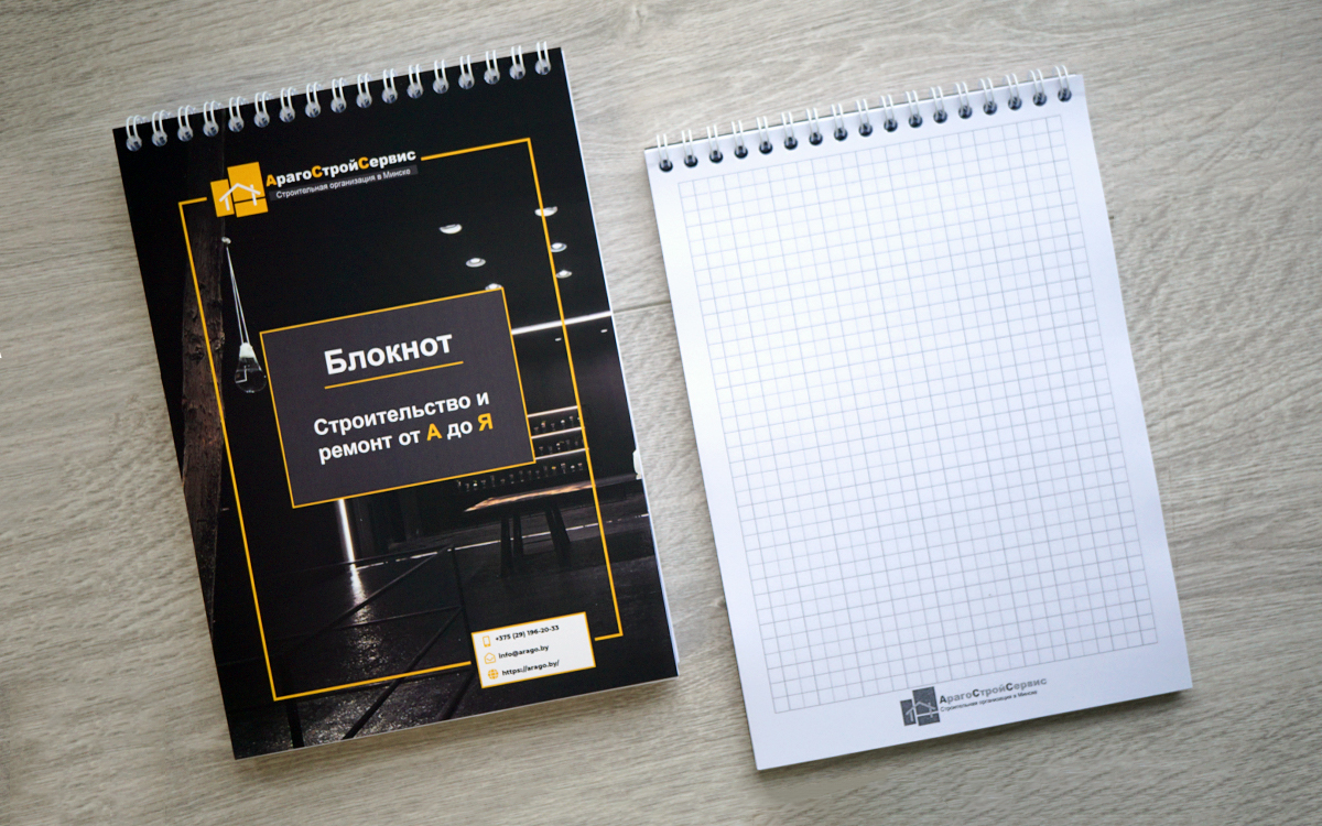 Доступна печать блокнотов следующих форматов: