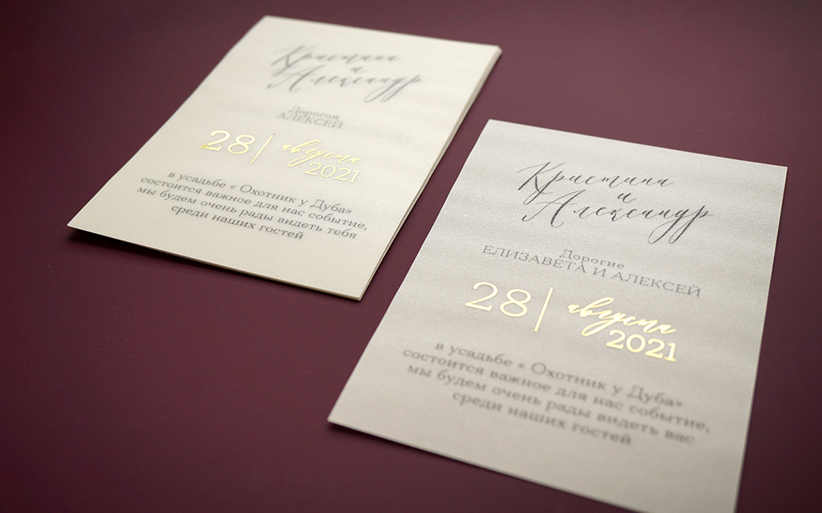 Пригласительный А6 бумага мелованная 300 г/м, ламинация софт (приятная на ощупь) печать с двух сторон: — фольгирование с одной стороны, 20 шт. – 81,00 руб. — Фольгирование с двух сторон, 20 шт. – 118,50 руб. Конверт С6 бумага мелованная, 200 г/м, ламинация софт (приятная на ощупь): — печать с одной стороны, без фольгирования, 20 шт. – 132,50 руб. — печать с одной стороны, фольгирование с одной стороны, 20 шт. – 240,50 руб. — печать с двух сторон, фольгирование с одной стороны, 20 шт. – 268,00 руб. |