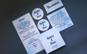 Пригласительный А6 бумага Galaxy Metallic, печать белым цветом с двух сторон, 20 шт. – 76,00 руб. Конверт С6 бумага Galaxy Metallic 120 г/м, печать белым цветом, 20 шт. – 176,00 руб. Бирки с односторонней печатью белым 90*50мм или диам. 60мм, 20 шт. – 20,00 руб. Карточки рассадки 50*90мм (в сложенном виде), печать с одной стороны белым, 20 шт. – 40,00 руб.Бонбоньерка-мешочек 20 шт. – 183,00 руб. |